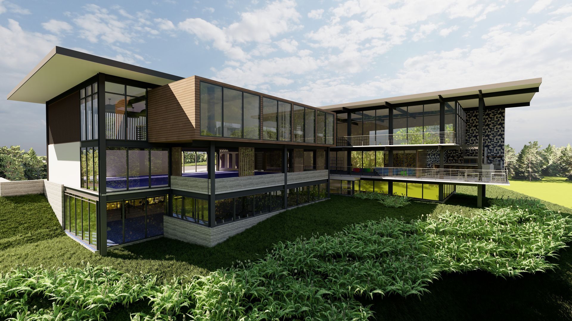 A high-performance center for athletes with special focus in Brazilian jiu-jitsu. The topography of the lot, with a steep slope and a river bordering the rear boundary, suggests incorporating nature as part of the architecture.